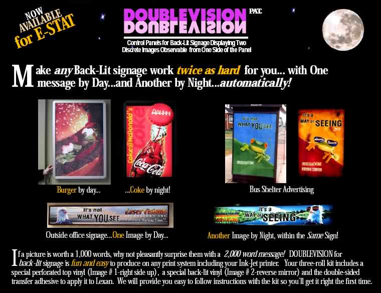 Per’f-Alite™ Electric Vinyl Luminex OutDoor Displays Laser Perforated Vinyls - Retro Reflective See-Thru Vinyls - Electro-Luminescent See-Thru Vinyls - DoubleVision™ PDF Articles and Presentations Archive